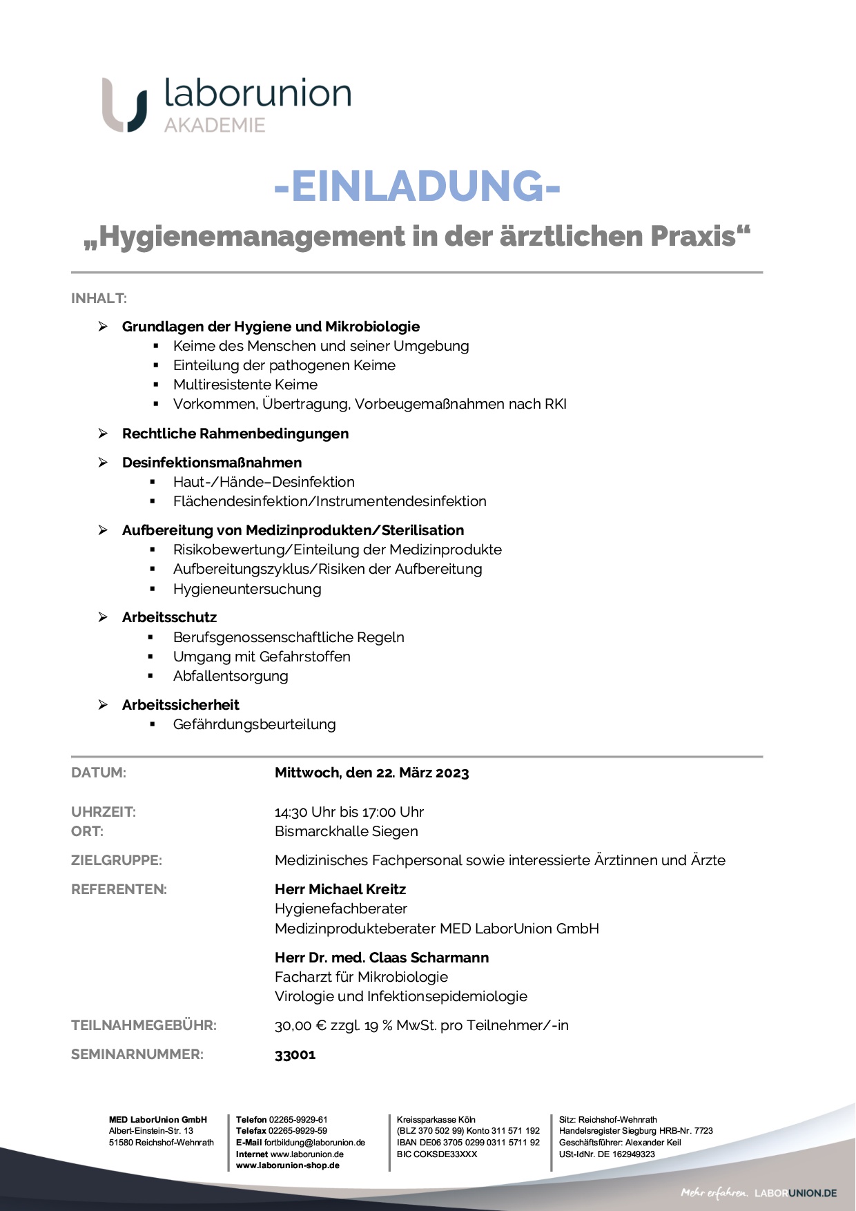 SMINAR: "Hygienemanagement in der ärztlichen Praxis"