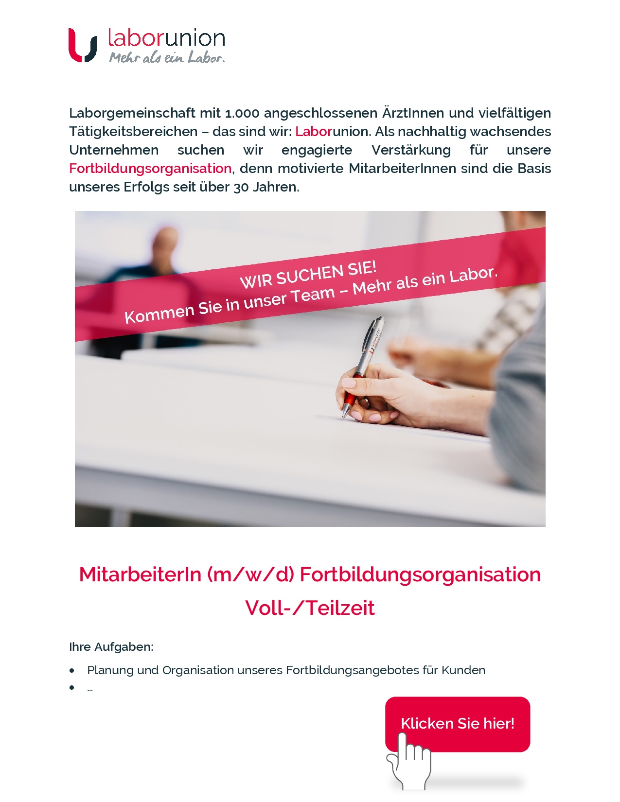 Fortbildungsorganisation MitarbeiterIn (m/w/d), Voll-/Teilzeit