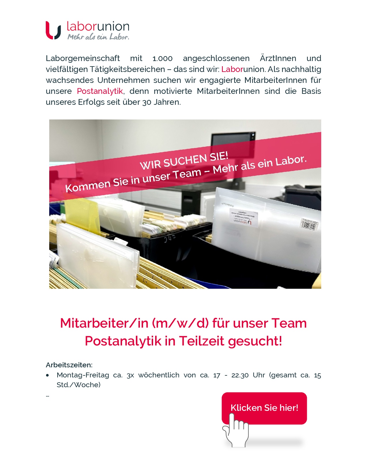 Postanalytik MitarbeiterIn (m/w/d), Teilzeit